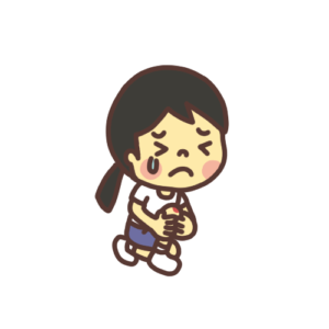足を骨折して松葉杖をつく子どものイラスト 辛い表情