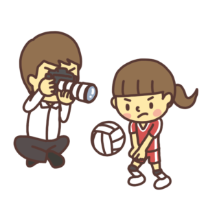 運動会、競技大会、スポーツの試合などで子どもの写真を撮影するお父さんのイラストです。望遠カメラでアスリートを撮影する大人のイラスト。しんごパパ「撮影をする大人のイラスト」とイラストバンク内の「スポーツのイラスト」を組み合わせることで「子ども...