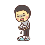 「ごめんなさい」と謝る子どものイラスト 冷や汗