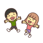 バンザイして喜ぶ2人の子どものイラストです。関連ページ