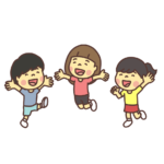 3人でバンザイジャンプをして喜ぶ子どもたちのイラスト 2パターン