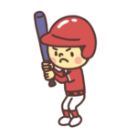野球の試合でバッターボックスに立つ子ども(男の子)のイラスト