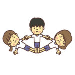 運動会のリレーで次の子にバトンを渡す子どものイラスト