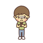 両手をグーにしてぶりっ子風の笑顔の子どものイラスト。ほっとした笑顔。