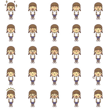 表情 子どもの豊かな「表情」を描いたフリー素材イラスト一覧ページです。 定番の笑顔や泣き顔はもちろん、驚き、怒り、困り顔、さらには言葉にできない微妙な感情まで、1つのポーズにつき最大79パターンの表情バリエーションを収録しています。 全て商用利用無料で登録不要。SNSのアイコン、心理テスト、教材の挿絵、感情の変化を伝えるブログ記事など、細かなニュアンスを表現したい場面に最適です。