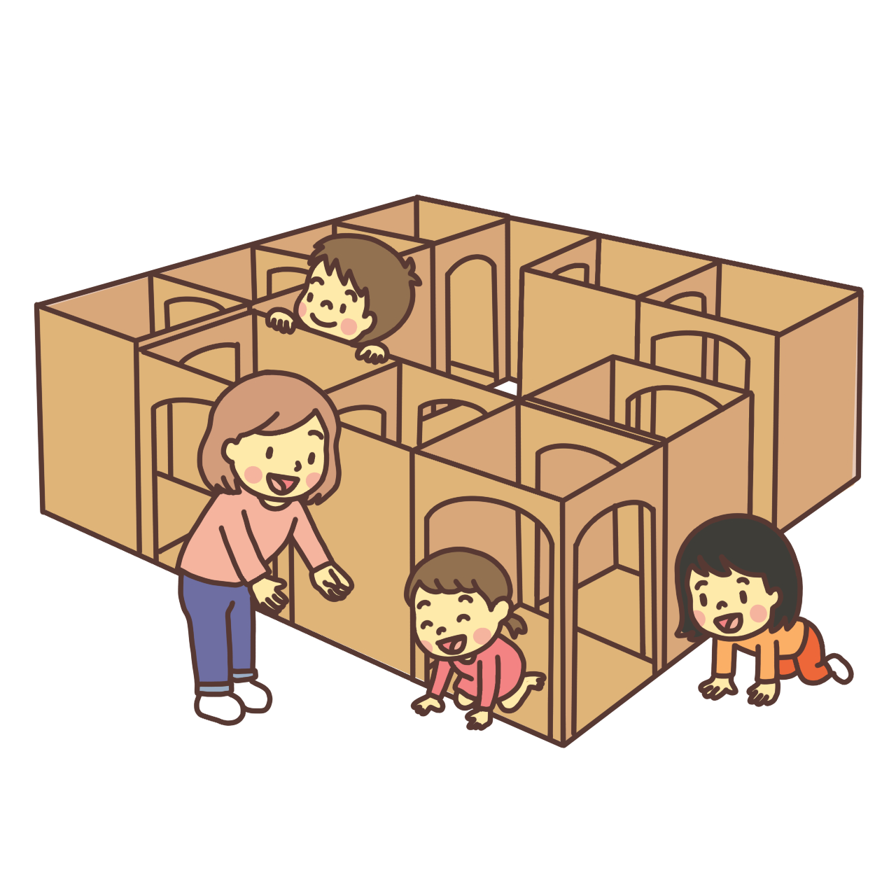 ダンボール迷路で遊ぶ子どものイラスト