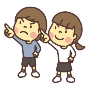 4人で並んでピースサインをする子どものイラスト 4パターン