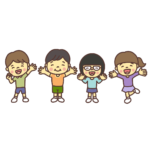 手を上げる4人の子どものイラストです。手を振る。手を上げる4人の子どものイラスト笑顔バージョン関連ページ