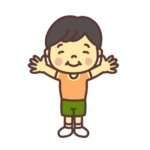 両手を上げて手を振る太った子ども(男の子)のイラストです。ぽっちゃり、太り気味、肥満、デブ、体が大きい、体重が重い。両手を上げて手を振る男の子のイラスト笑顔バージョン関連ページ