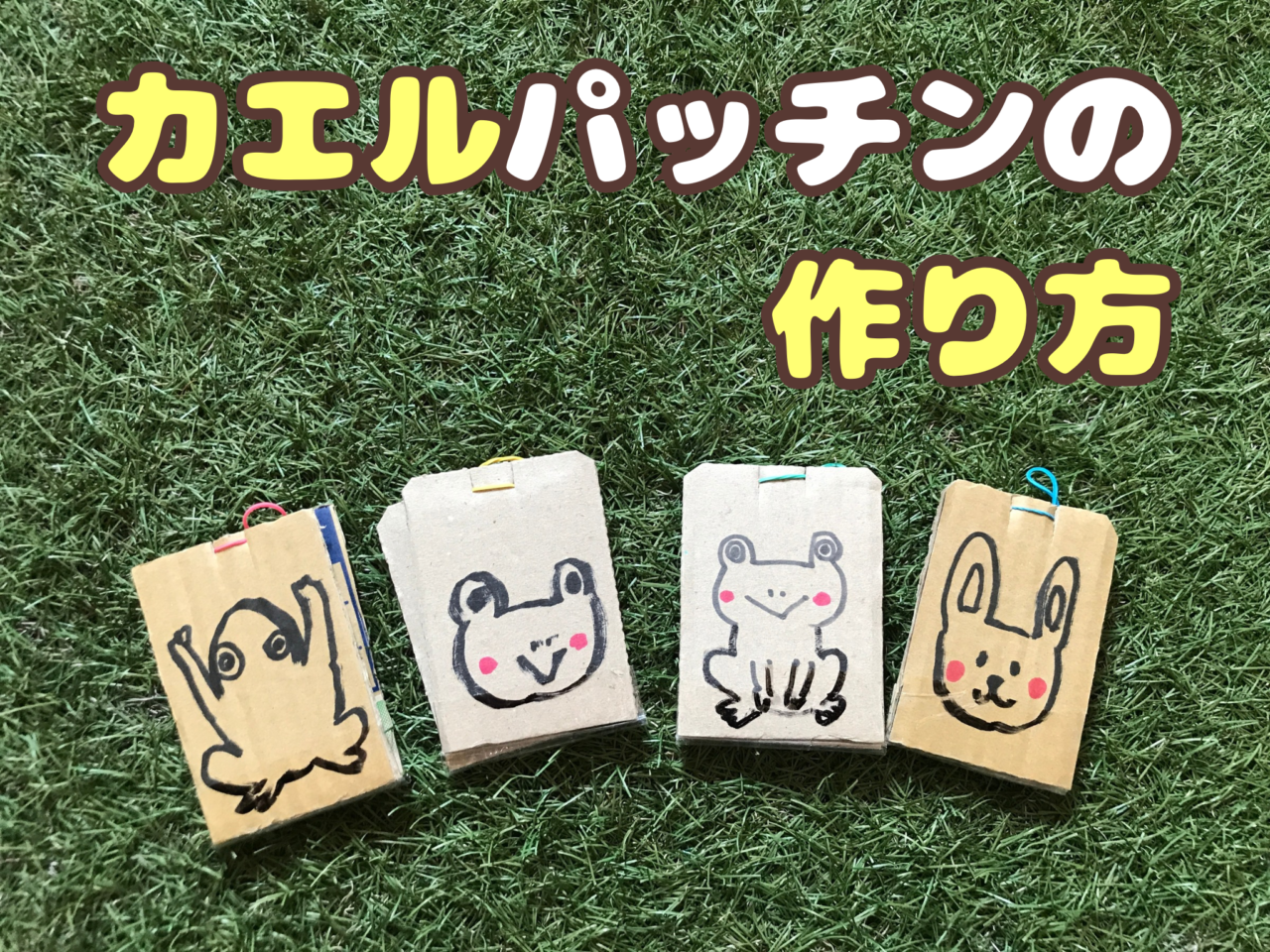 ダンボールの板をゴムの力で飛ばす、カエルのおもちゃの作り方を紹介します。