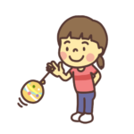 「紙コップけん玉」で遊ぶ女の子のイラスト