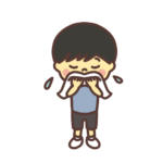 朝起きて洗面所で顔を洗う男の子のイラスト。洗顔、朝、寝起き、起床後。