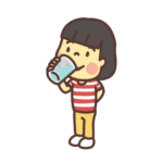 両手でコップを持って水を飲む子どものイラスト 笑顔