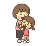 お母さんに後ろから抱きしめられる子ども(幼児)のイラスト 4パターン
