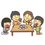 お祖父さんに伝承遊びのコマの紐の巻き方とコマの回し方を教わっている子どものイラストです。昔遊び、地域のボランティア、児童館、独楽、コマ、紐を巻くコマ、コマ回し大会、対決、勝負、バトル、おじいさん、おじいちゃん。