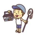 公園のベンチでゲームをして遊ぶ子ども(男の子)のイラスト笑顔バージョン