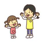 レインコートを着て水溜りで遊ぶ子ども(女の子)のイラスト