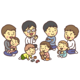 虫眼鏡でちりめんじゃこの中から魚を発見する子どものイラスト