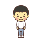 手を前に合わせてお辞儀をする子どものイラスト 目を開ける