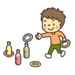 遊ばなくなったおもちゃを寄付しようと箱に入れて持って来てくれた子どものイラストです。かえっこバザール、かえっこ、とりかえっこ、おもちゃの寄付、児童館、児童養護施設、子ども食堂、保育園、幼稚園、ひとり親支援団体、おもちゃ交換会、SDGs。