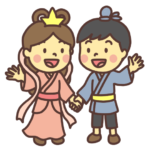 お正月に晴れ着を着た(女の子と男の子)のイラストです。着物を着て初詣行くところです。羽子板、はごいた、お正月遊び、七五三、ハーフ成人式、結婚式、和装、袴。