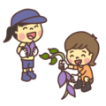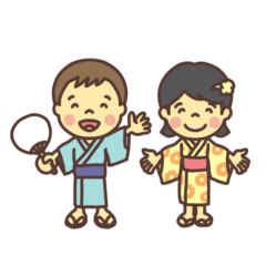 お正月に晴れ着を着た子ども達のイラスト 笑顔