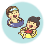 2人で両手を広げるポーズをとる子どもたちのイラスト 4パターン