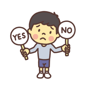 YESかNOの選択に迷う子どものイラスト 4パターン
