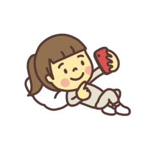 スエットを着て自分の部屋での自由時間。ソファで横になりながらスマホを見ている子どものイラストです。