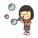 シャボン玉を吹いて遊ぶ子どものイラスト