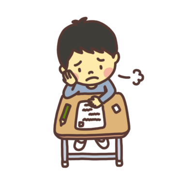感情 テスト用紙を前にして困り顔の子ども(男の子)のイラスト