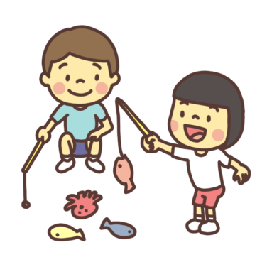 すべて 「魚釣りゲーム」をして遊ぶ子どものイラスト
