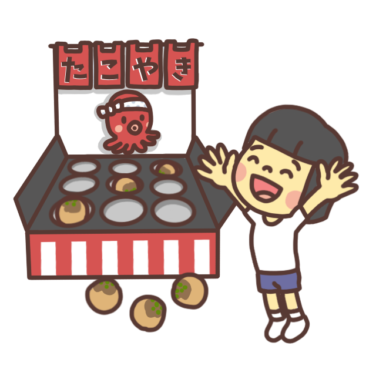 すべて 「たこ焼きビンゴゲーム」をして遊ぶ子どものイラスト 4パターン