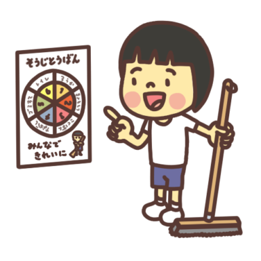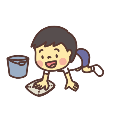 生活 掃除の時間に雑巾を絞る子どものイラスト