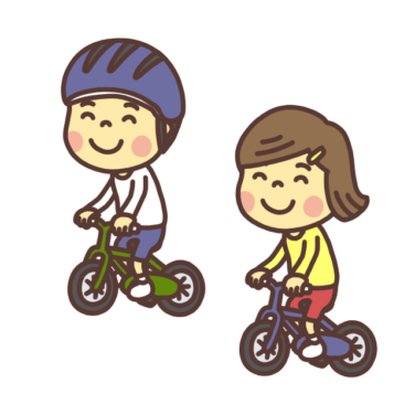 生活 自転車に乗ってお出かけをする子どもたちのイラスト 4パターン