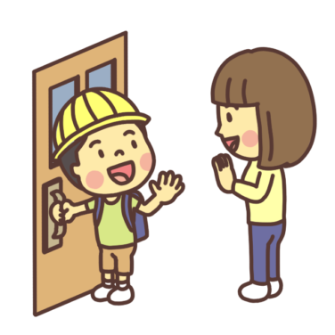 生活 【通学】「いってきます」の挨拶をして家を出る子どものイラスト 2パターン