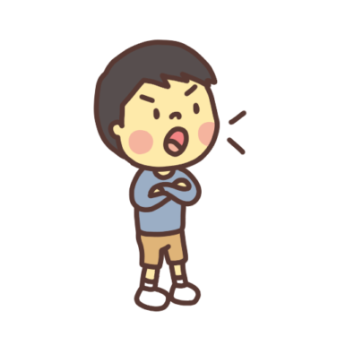 感情 腕を組んで怒鳴る子ども(男の子)のイラスト 4パターン