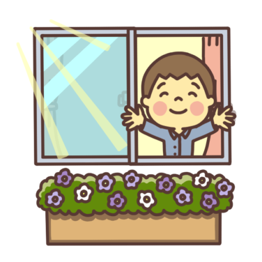 生活 朝に窓を開けて朝日を浴びる子どものイラスト 6パターン