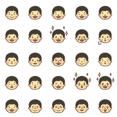 表情 短髪ヘアの男の子 顔アイコン 正面 表情イラスト94パターン