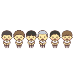 体育座りの男の子たち(6人横並び)のイラスト 14パターン