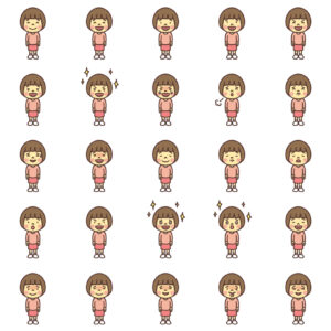 かわいい短髪ヘアの男の子 正面 立ち姿 表情イラスト。幼児から小学生ぐらいの子ども、幼稚園児、保育園児、児童。