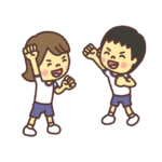 向かい合ってガッツポーズをする子どもたちのイラスト