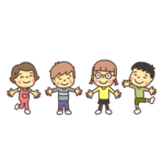 4人で両手を広げるポーズの子どもたちのイラスト 4パターン