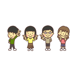 4人で並んでピースサインをする子どものイラスト 4パターン