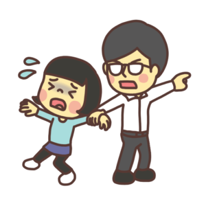 子どもの腕を無理やり引っ張る大人(男性)のイラストです。子どもは恐怖を感じて嫌がっています。