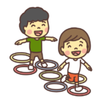 「輪投げ」をして遊ぶ子ども(男の子)のイラスト